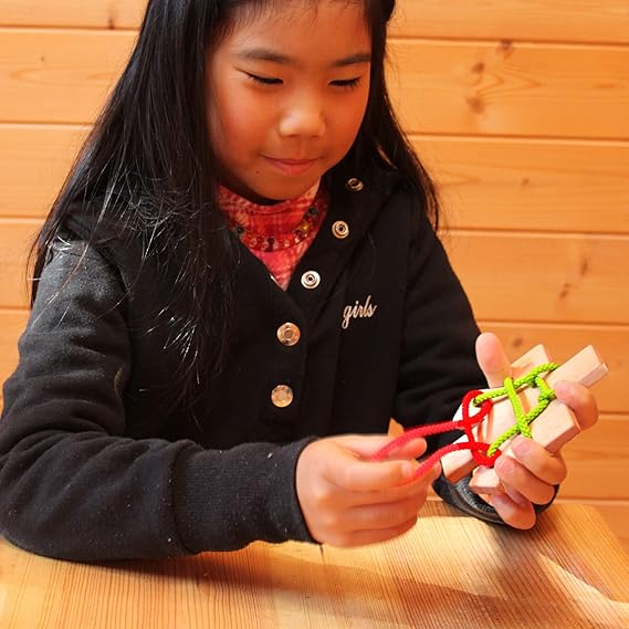 木製の「立体知恵の輪」、少し難しくても魅了される楽しみ!このおもちゃは、子供から大人まで幅広い年齢層が楽しめる知育玩具です。緑の紐に結ばれた赤い紐を外し、元の位置に戻すゲームですが、見た目よりも簡単ではありません。思い通りに進まないときの驚きや挑戦の快感を味わえます。