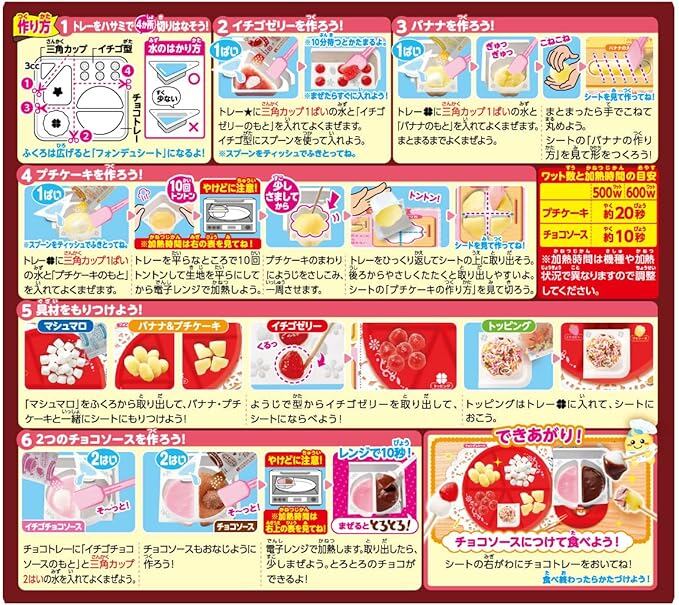 具材はイチゴゼリー、バナナ、プチケーキ、マシュマロの4種類