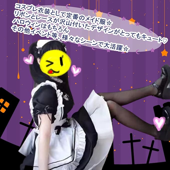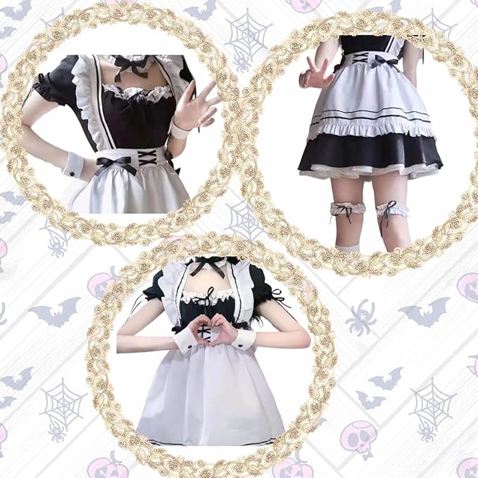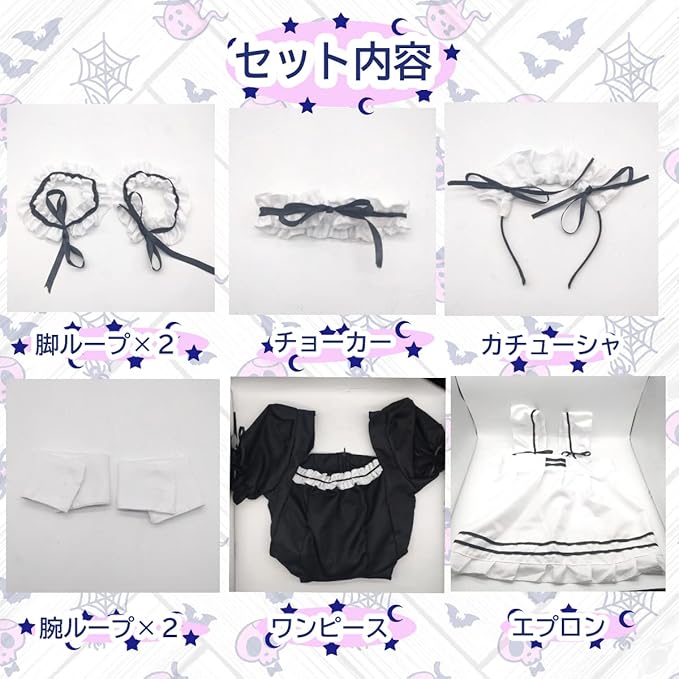 メイド服 コスプレ かわいい ゴスロリ レディース 6点セット ワンピース 半袖 ハロウィン 仮装 カチューシャ付き (M)