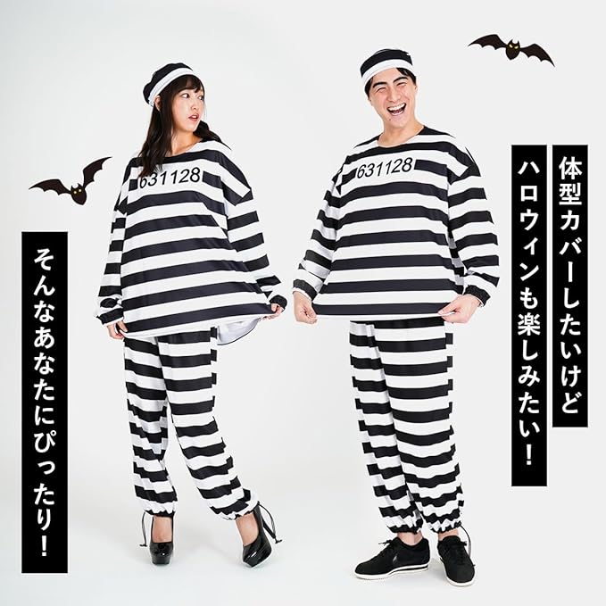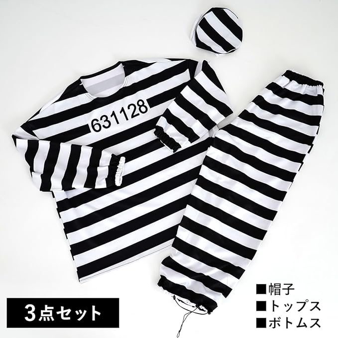 [monoii] 本格! 囚人服 ハロウィン コスプレ 囚人 仮装 メンズ 衣装 レディース コスチューム e0698