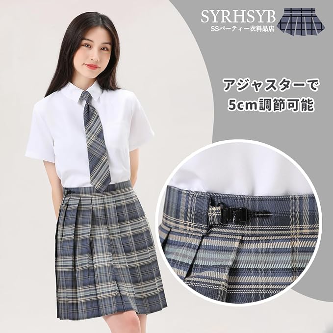 [SYRHSYB] スカート 制服 JK コスプレ 3点セット プリーツスカート 制服スカートコスチューム ミニ スクールスカート 48CM 43CM リボン ネクタイ付き 写真撮影 コスプレ遊園地 学園祭 文化祭コスチューム衣装 ハロウィン
