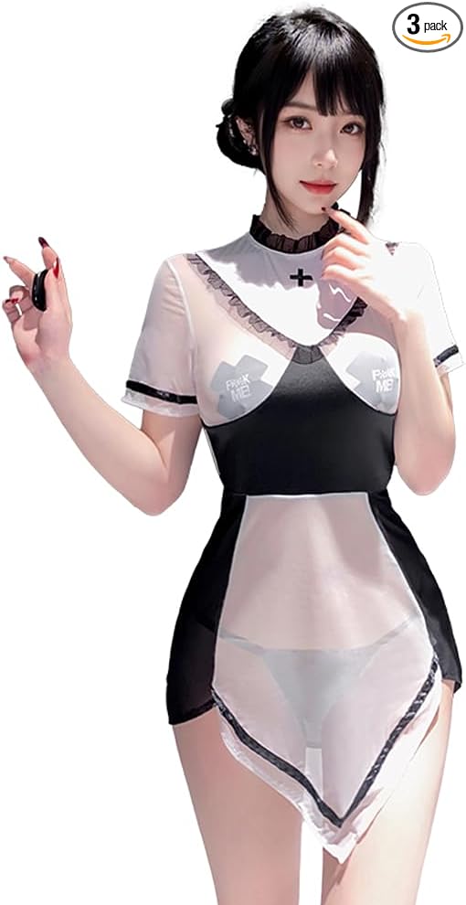 [Baioretto] シスター コスプレ セクシー エッチ 透け透け シスターコスプレ シースルー 可愛い 聖女 教会 牧師 宣教師 誘惑 女性 仮装 衣装 セット バレンタインデー クリスマス ハロウィン 記念日 女性用 フリーサイズ 修道女 コスチューム