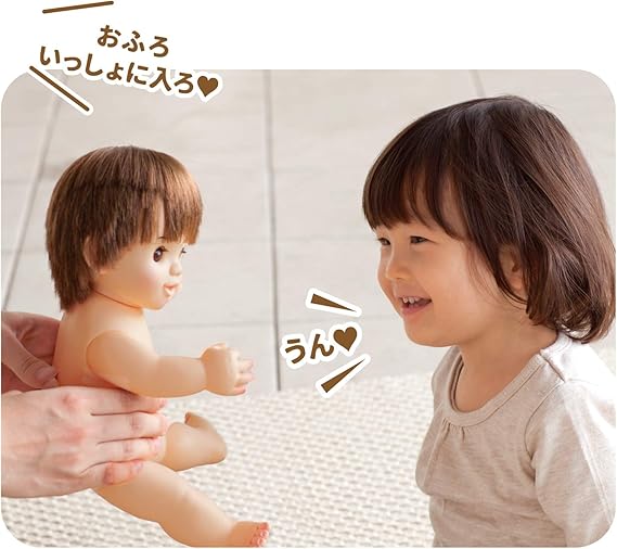 一緒にお風呂に入れちゃう、シンプルボディのぽぽちゃんです。だっこにぴったりのサイズ。