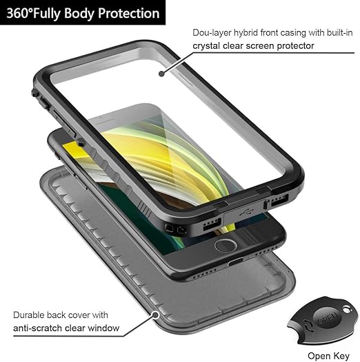Cozycase 対応 iPhone SE2 / iPhone SE3 / iPhone 8 / iPhone 7 ケース 防水 - 耐衝撃 「IP68防水防塵/全面保護/防雪/水中撮影/米軍規格/QI充電対応」 iPhone SE2用 防水ケース ストラップホール付き 携帯ケース バンパー付き お風呂 海 雨用など iPhone SE(第三世代)2022/ iPhone SE(第二世代)2020/iPhone7/8に適用(ブラック) a